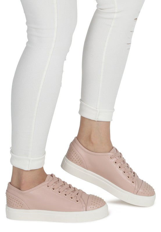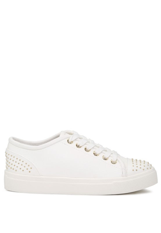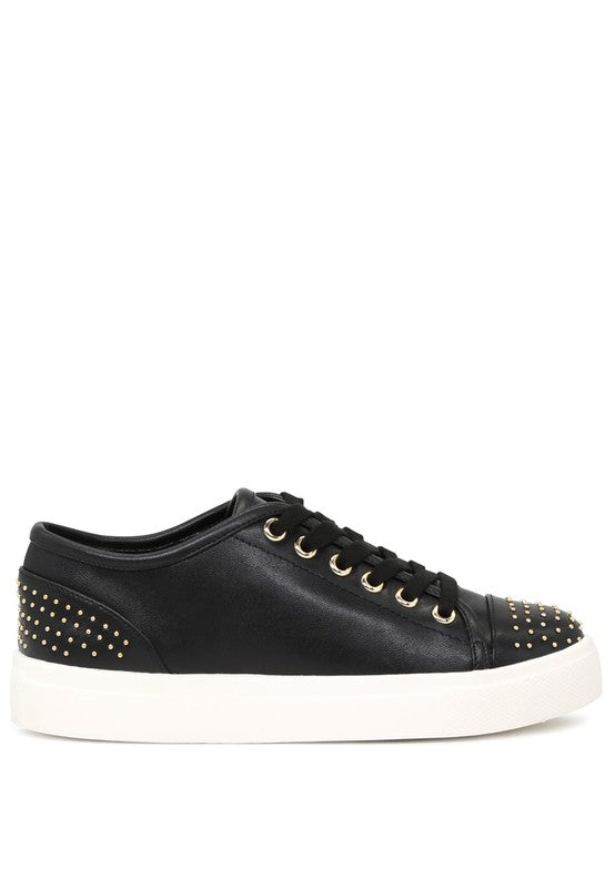 Studded Metallic additions make this faux leather everyday shoes beautiful. It has a comfortable structure which keeps feet relaxed and has rubber outsole which keeps safe on all surface.